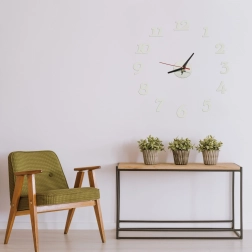 Ce kit d’horloge conçu pour un montage autonome offre une flexibilité de dimensions de 70 cm à 130 cm. L’horloge est destinée uniquement à être installée sur des surfaces lisses et est alimentée par des piles AA, non incluses. Le mouvement fluide des aiguilles garantit une mesure précise du temps.
