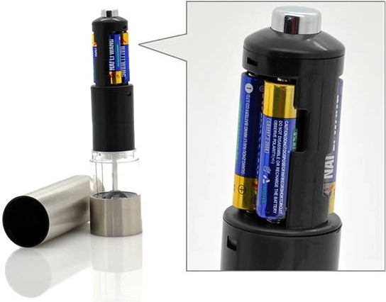 Les fonctionnalités supplémentaires du moulin incluent un nettoyage facile et un rechargement simple des épices en dévissant la partie supérieure. Le mécanisme est alimenté électriquement par 4 piles AA (non incluses) et offre une épaisseur de broyage réglable.
