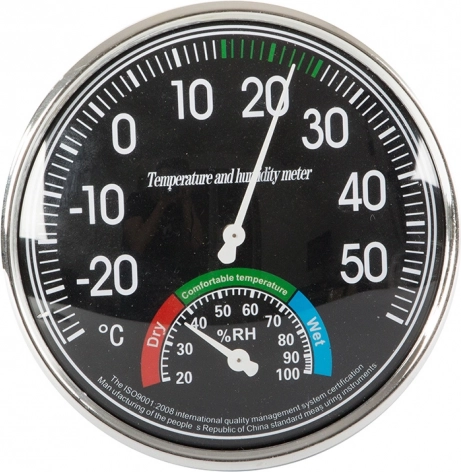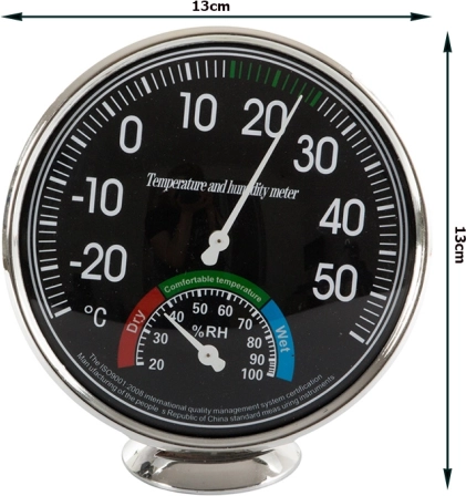 - Équipé de deux grands cadrans - température de diamètre 11 cm et humidité de 4 cm.