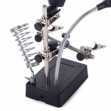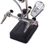 Des pinces crocodile solides et des bras réglables maintiennent fermement la pièce. Le support spiralé permet de poser le fer à souder en toute sécurité pendant le travail.