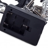 Des bras métalliques robustes avec pinces crocodile puissantes et articulations entièrement réglables fixent les petites pièces. Une base stable avec espace pour nettoyeur de panne et un support spirale pour fer à souder assurent un environnement de travail sûr et organisé. L’alimentation est possible via 3× AA (non incluses) ou via l’adaptateur secteur 5 V / 1 A fourni.