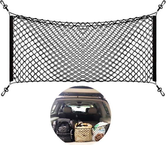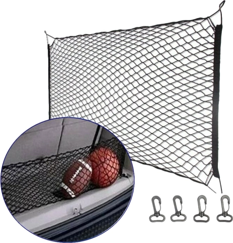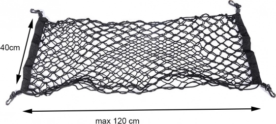 Filet hautement résistant adapté à tout type de véhicule. Peut être facilement fixé au fond ou aux côtés du coffre, permettant une fixation solide de divers objets. Ce filet flexible est fabriqué en matériaux de qualité et sert d'organisateur pratique pour votre espace de bagages.