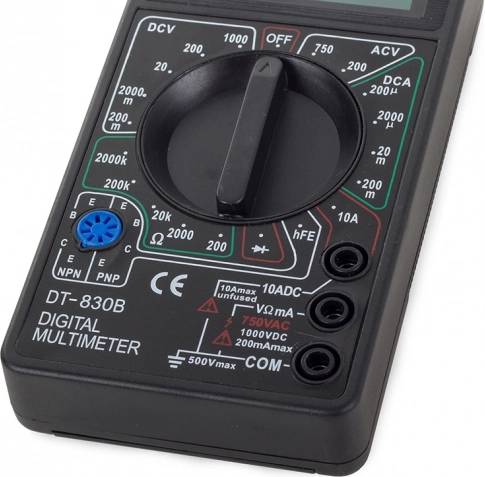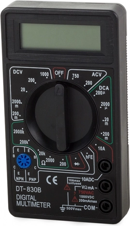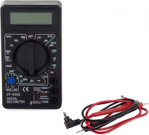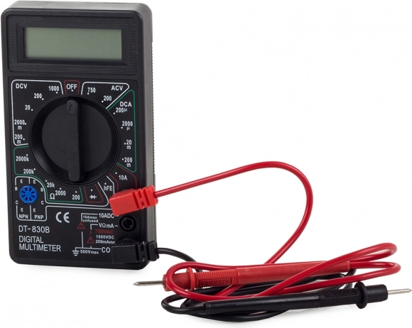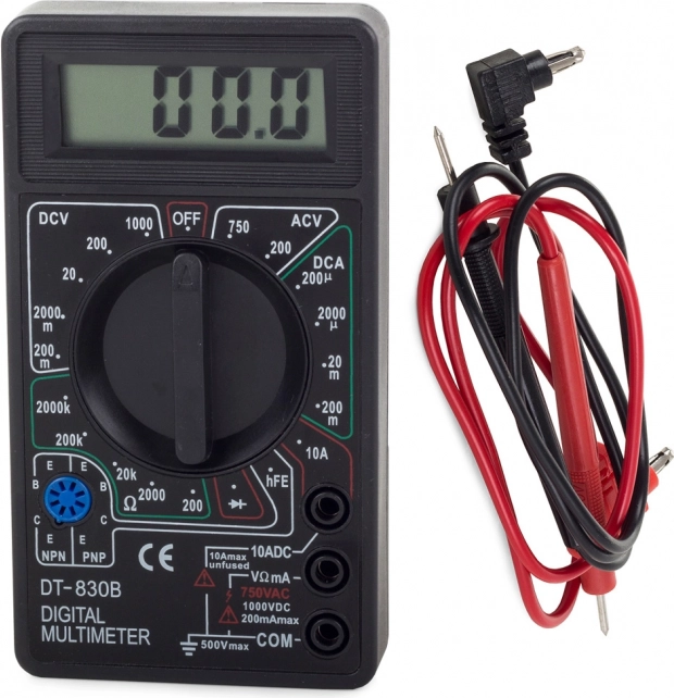 Compact et fiable, le multimètre issu de la conception éprouvée DT‑830B vous permet de contrôler les tensions DC/AC, le courant continu et la résistance. L’écran LCD clair facilite la lecture des valeurs et l’arrêt automatique préserve la batterie afin que l’appareil soit toujours prêt à l’emploi.
