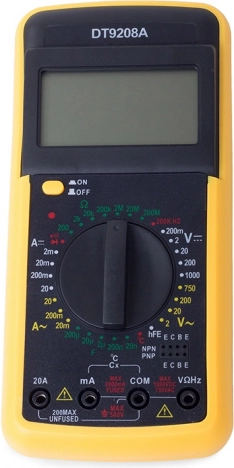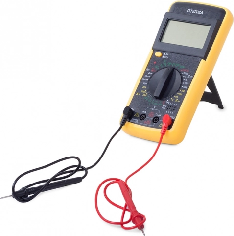 - Contenu de l'emballage : multimètre, ensemble de câbles de mesure, câble de mesure avec sonde, pile 9V et emballage d'origine