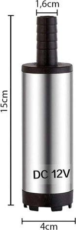 Pompe 12 V universelle, idéale pour la vidange d’huile, le transvasement de diesel et le pompage d’eau claire depuis des réservoirs, bassins ou fontaines. Grâce à son corps en acier inoxydable et au refroidissement du moteur par le liquide pompé, elle fonctionne de manière fiable et durable. Ses dimensions compactes (Ø 4 cm, longueur 15 cm) facilitent l’usage dans les espaces exigus.