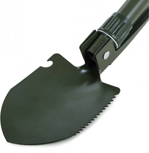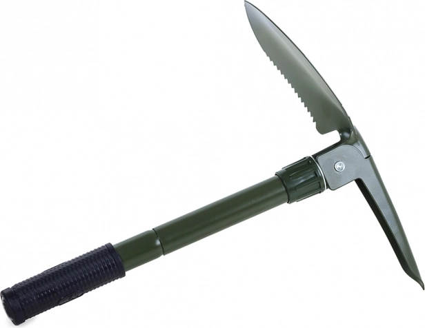 Un seul équipement pour de nombreuses tâches : pelle/lame, pioche, scie et décapsuleur. Une solution pratique pour le terrain comme pour le jardin.