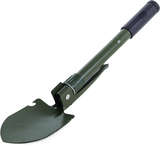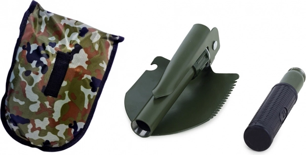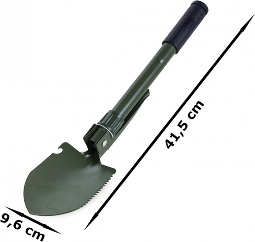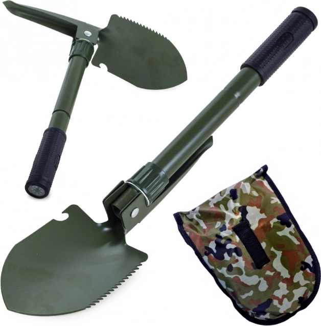 Cette pelle multifonction pliante combine pelle, pioche, scie et décapsuleur dans un outil compact. Elle est fabriquée en acier de haute qualité, résistant aux conditions exigeantes en pleine nature comme au quotidien. La poignée antidérapante garantit une prise sûre et un travail en sécurité.