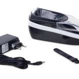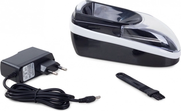 Ce formidable appareil électrique vous permet de remplir rapidement et efficacement une boîte de cigarettes selon vos préférences. Il est équipé d'un système de régulation de la densité de remplissage des cigarettes, assurant une utilisation optimale du tabac. Un coussinet antidérapant spécial sur la face inférieure assure la stabilité de l'appareil pendant son utilisation.