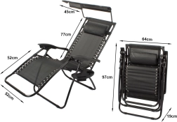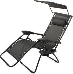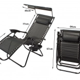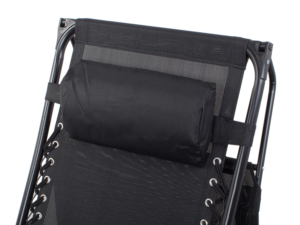 La chaise longue Zero Gravity s’adapte à votre position préférée en un mouvement fluide et la maintient en toute sécurité grâce au système de verrouillage. La maille respirante reste agréable même par forte chaleur, et le cadre en acier avec revêtement poudré assure stabilité et longévité. Le pare-soleil réglable intégré vous protège du soleil et le coussin moelleux soutient la tête.