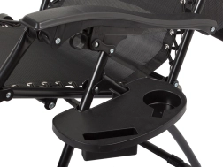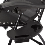 La chaise longue se plie rapidement de façon compacte. La tablette latérale accueille boissons et petits objets pour une détente ininterrompue.