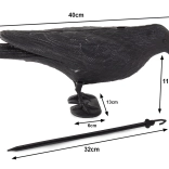 Une statuette de corbeau grandeur nature qui repousse efficacement les oiseaux et les rongeurs de votre jardin, verger, balcon ou terrasse. Elle est fabriquée en plastique résistant pour une utilisation en extérieur, se pose ou se suspend facilement grâce au crochet fourni, et aide à protéger les récoltes des dégâts et salissures.