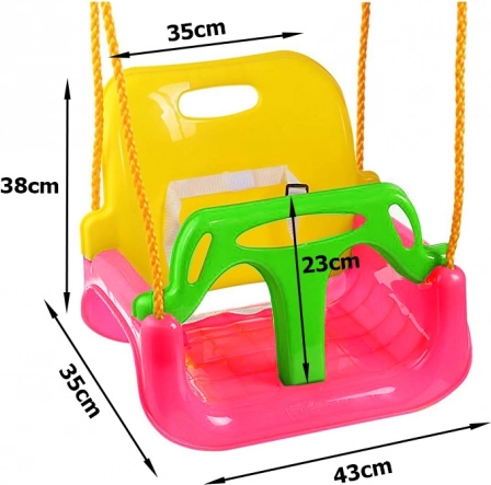 Balançoire colorée 3 en 1 qui grandit avec votre enfant – du siège sécurisé pour tout-petits à la balançoire classique pour les plus grands. Grâce à sa conception modulaire, à la hauteur de cordes réglable et à la ceinture de sécurité, elle offre une sécurité maximale, un confort et une longue durabilité pour une utilisation au jardin, sur la terrasse ou à la maison.