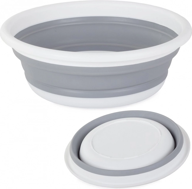 Pratique, le bol en silicone pliable d’une capacité de 9 l économise de la place à la maison comme en voyage. L’association silicone et plastique assure résistance, légèreté et entretien facile. Idéal pour un évier à une cuve, pour laver fruits et légumes ou pour le camping ; une fois replié, il ne mesure que 4 cm de hauteur.