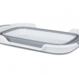 Gagnez de la place à la maison avec un bassin compact qui se déplie et se replie en un instant. La combinaison de plastique et de silicone assure résistance, entretien facile et longue durée de vie. Une fois plié, le bassin ne mesure que 7,5 cm de hauteur, vous pouvez donc le ranger facilement dans un placard ou entre des appareils.