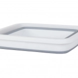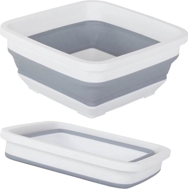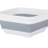 Bassine pliable pratique en silicone et plastique résistants qui économise de la place dans la cuisine comme en voyage. Grâce à son volume de 6 l, à ses pieds rabattables stables et à son pliage compact, elle est idéale pour un évier à une cuve, pour le lavage de la vaisselle, des fruits et des légumes ainsi que pour le camping-car ou la tente.
