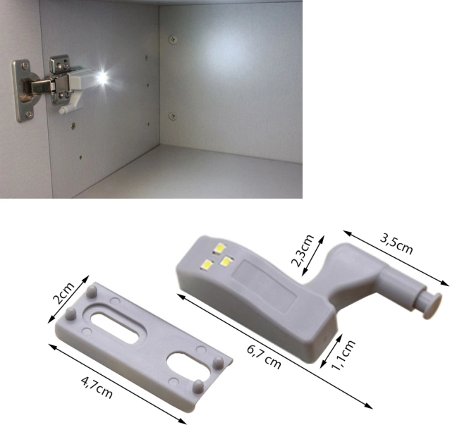 Lumière de charnière d’armoire pratique avec 3 diodes LED qui s’allume automatiquement à l’ouverture de la porte et s’éteint à la fermeture. Grâce à son montage universel, elle s’adapte à la plupart des charnières, fournit une lumière blanche froide et brillante et aide à retrouver rapidement les objets même dans les armoires obscurcies. Installation facile avec une seule vis.