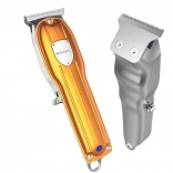 Élégante tondeuse dorée MÄRSKE pour des finitions précises des cheveux et de la barbe. Elle offre une lame en acier inoxydable, un fonctionnement sans fil, une charge rapide via USB et 3 sabots 1–3 mm pour des lignes nettes et des détails impeccables.