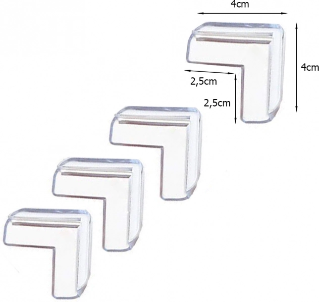 Les protections sont fabriquées en silicone d’une épaisseur de 4 mm, offrant une protection fiable sans ajouter de volume inutile au meuble. Leurs dimensions compactes conviennent à la plupart des angles standard.