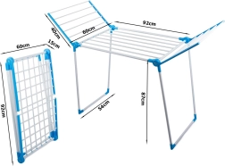 L'étendoir est idéal pour une utilisation à domicile et dans le jardin. Lorsqu'il est plié, il prend peu de place, ce qui permet de le ranger facilement dans une armoire ou derrière une porte. Son entretien facile permet de le nettoyer simplement avec un chiffon humide.