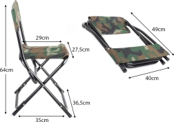 L’assise confortable est complétée par un dossier et un textile résistant à motif camo pour des moments agréables au bord de l’eau ou près du feu.