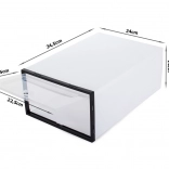 Cette boîte à chaussures polyvalente est idéale pour un usage quotidien comme pour un stockage de longue durée. Le clapet transparent permet de garder le contenu visible en permanence et les ouvertures de ventilation assurent la circulation de l’air. Lorsque vous ne l’utilisez pas, vous pouvez simplement la plier à plat.