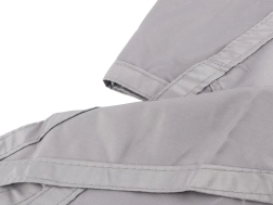 - bords renforcés et surpiqués ; angles renforcés ; bâche composée de deux parties (couture centrale)