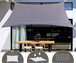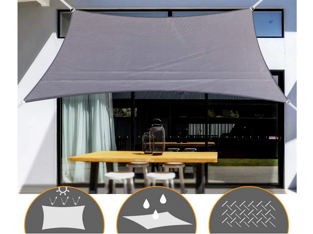 Pratique bâche d’ombrage rectangulaire de 3 × 2 m offrant une ombre fiable et une protection contre la pluie et le soleil au jardin, sur la terrasse ou en camping. Elle est fabriquée en polyester résistant 180 g, avec bords et angles renforcés, œillets métalliques et cordes de montage incluses. Grâce au traitement déperlant, à la résistance au vent et à la protection UV, elle est idéale pour une utilisation en extérieur, facile à installer et sèche rapidement. Imperméabilité, protection UV, matériau robuste 180 g, montage facile et utilisation polyvalente.