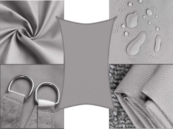 Profitez d’une ombre confortable et d’un espace sec même pendant les averses. La bâche solaire rectangulaire 3 × 2 m en élégant gris associe un polyester résistant 180 g à des bords et angles renforcés pour une longue durée de vie. Le traitement déperlant et la protection contre les UV garantissent des performances fiables par temps changeant, et la bâche sèche rapidement.