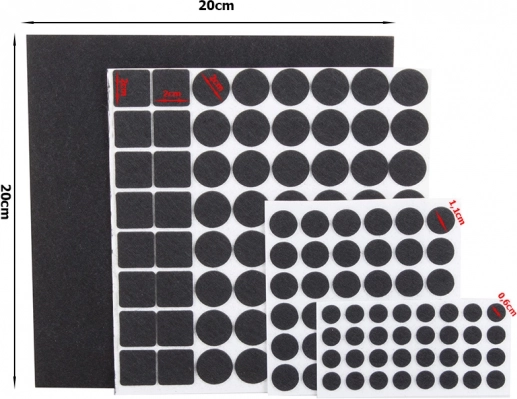 Le paquet contient un total de 133 patins en formes circulaires et carrées, assurant une utilisation polyvalente sur différents types de meubles.