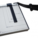 Le massicot dispose d’une base métallique robuste qui assure la stabilité au travail. La surface est dotée de gabarits de formats standard, simplifiant le processus de rognage. Sa lame de qualité en acier trempé permet une coupe fluide de différents formats de papier.