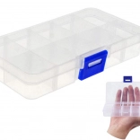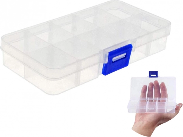 Organiseur pratique extensible jusqu’à 10 compartiments, idéal pour garder de l’ordre dans les vis, médicaments, bijoux ou perles. Grâce au couvercle transparent, vous gardez toujours un œil sur le contenu et le clip robuste empêche toute ouverture involontaire pendant le transport.