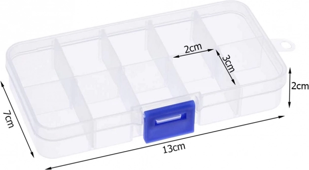 Boîte de rangement universelle avec compartiments amovibles, idéale pour trier de petits objets à la maison, à l’atelier ou en déplacement. Grâce à ses dimensions compactes 13 × 7 × 2 cm, elle tient dans un sac à main ou un sac à dos, et l’orifice de suspension facilite la fixation au mur à portée de main.