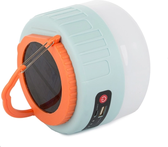 Lanterne LED solaire compacte pour le camping et les activités outdoor, facile à recharger via USB ou panneau solaire intégré. Elle offre un haut flux lumineux, plusieurs modes d’éclairage dont SOS, une fonction powerbank et une télécommande pour un confort d’utilisation maximal.