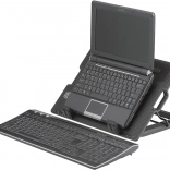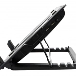 Ce support de refroidissement performant, équipé d’un grand ventilateur silencieux, améliore le flux d’air et empêche la surchauffe de l’ordinateur portable. Quatre niveaux d’inclinaison (env. 20–40°) favorisent une posture saine et une frappe confortable. Sa construction robuste avec éléments antidérapants maintient l’appareil bien en place.