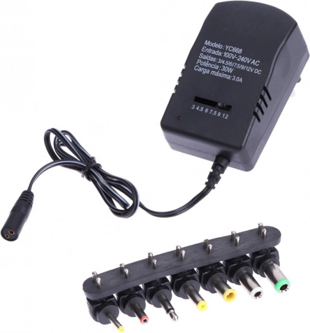 Cette alimentation universelle est idéale pour les lecteurs DVD/CD/cassette, cadres photo numériques, jouets électroniques, accessoires informatiques ou consoles de jeux TV. Réglez facilement la tension requise parmi 3 V, 4,5 V, 6 V, 7,5 V, 9 V, 12 V et connectez différents types d’appareils grâce aux multiples embouts.