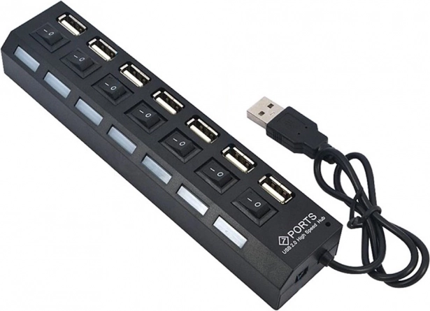 Le hub USB est la solution idéale pour connecter jusqu'à 7 appareils simultanément. Chaque port est équipé d'un interrupteur individuel ON/OFF et d'une LED bleue qui indique l'état de chaque port.