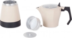 La cafetière est légère grâce à son corps en aluminium et est équipée d'une poignée en plastique ergonomique qui prévient les brûlures.