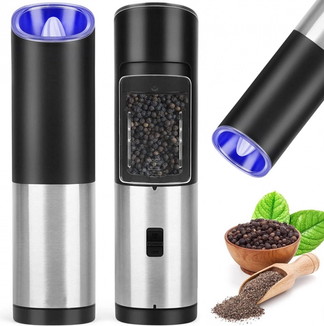 Moulin électrique gravitationnel pour sel et poivre avec éclairage LED