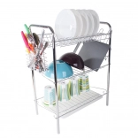 Égouttoir à vaisselle métallique à trois niveaux avec porte-couverts et support à planche