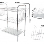 Le sèche-vaisselle à trois niveaux est la solution idéale pour toute cuisine où l’espace doit être optimisé. Sa structure métallique robuste à l’aspect chromé est durable et facile à entretenir. Grâce à son agencement réfléchi, rangez les assiettes dans les compartiments verticaux, les bols et saladiers sur les étagères, et les tasses ou verres sur le niveau inférieur.