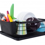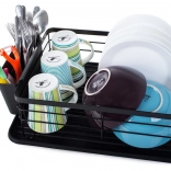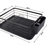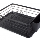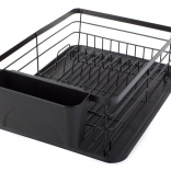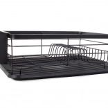Égouttoir à vaisselle pratique en élégante couleur noire pour garder votre plan de travail en ordre. Il offre un grand volume, de la place pour 11 assiettes, un organisateur séparé pour couverts et un bac d’égouttage en plastique qui protège le plan de travail de l’eau. La structure métallique avec revêtement par poudre garantit une longue durée de vie et un look moderne style loft.
