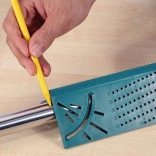 Grâce à la jauge de diamètres de forets, vous choisissez rapidement le foret adéquat sans essais fastidieux. La conception est adaptée aussi au marquage sur arêtes, coins et surfaces courbes, très utile pour tuyaux et profilés. La graduation millimétrique claire favorise un travail précis et accélère les opérations courantes.
