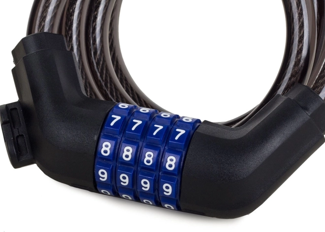 Antivol à code fiable pour vélo avec câble en acier et gaine en silicone résistante, assurant un verrouillage sécurisé de votre vélo, portail ou portillon. Grâce au code à quatre chiffres, fini le souci des clés ; la construction résistante aux intempéries protège de la corrosion et le support de cadre inclus facilite le transport.