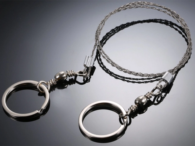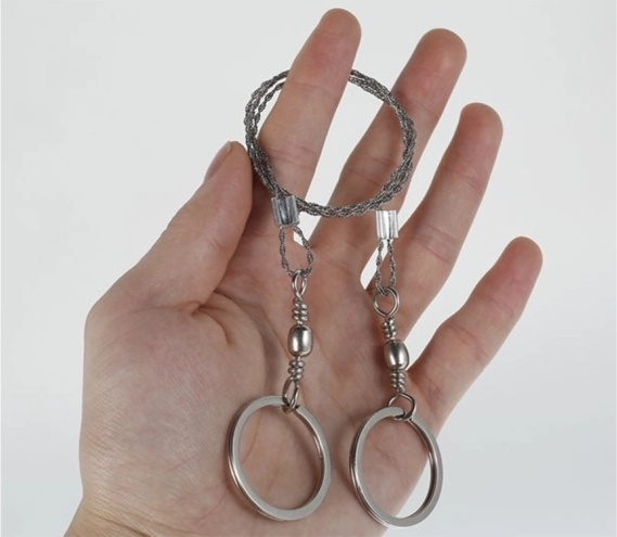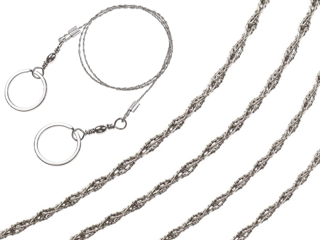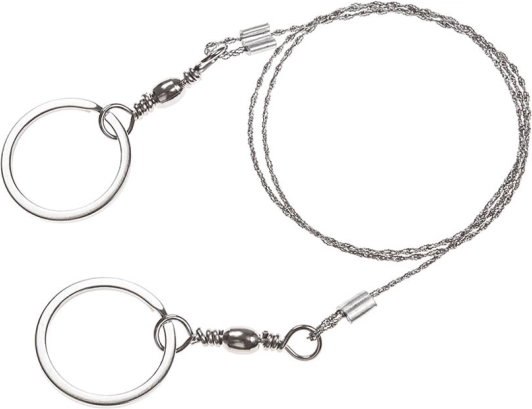 La scie à fil pratique est un élément indispensable de tout équipement de survie, EDC et de camping. Le câble inox tressé avec des milliers de fines dents garantit une coupe rapide et efficace pour un poids minimal. Les anneaux métalliques peuvent être tenus directement ou recevoir des baguettes en bois pour un travail encore plus confortable.