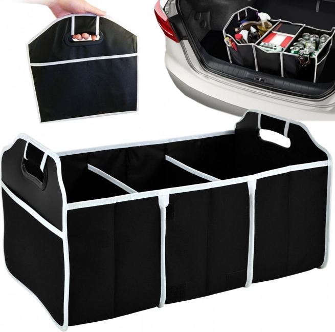 Ce pratique organisateur de coffre vous aide à avoir tout le nécessaire à portée de main – des outils et produits d’entretien auto aux courses et équipements de sport. Grâce à trois grands compartiments et quatre poches auxiliaires, tout reste bien organisé et rangé en sécurité.