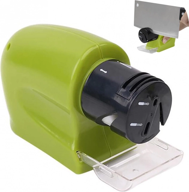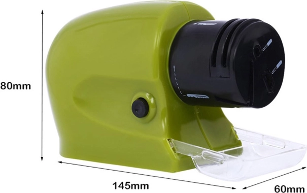 Pratique aiguiseur électrique pour couteaux, ciseaux et tournevis plats, qui redonne un tranchant net en quelques secondes. Grâce à sa tête rotative et amovible, à son utilisation sûre avec zone d'affûtage protégée et à l'alimentation 4× AA, il est idéal pour toute cuisine comme pour l'atelier. Dimensions compactes 145 × 60 × 80 mm et bac collecteur qui facilitent l'utilisation et l'entretien.
