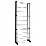 Nombre de niveaux réglable de 1 à 10 et espacement de 14 cm pour adapter l’espace à différents types de chaussures. Le cadre noir avec éléments chromés apporte une touche élégante à tout intérieur.
