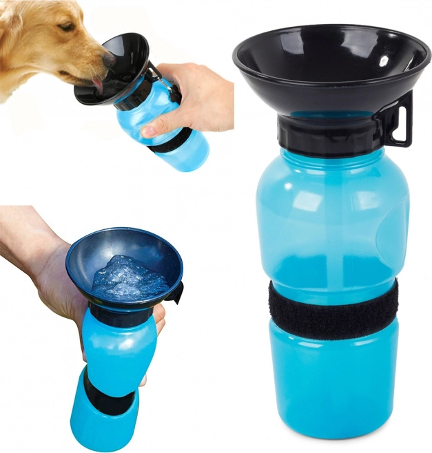 Bouteille de voyage pratique pour chiens avec bol intégré pour une hydratation confortable en déplacement. Il suffit d’appuyer sur la bouteille pour verser l’eau dans le bol. Grâce au bouchon anti-fuite, aucun risque de fuite dans le sac, et avec la poignée intégrée et la sangle à velcro, vous pouvez l’attacher facilement à une ceinture ou à un sac à dos. Idéale pour les promenades, les randonnées et les voyages par temps chaud.