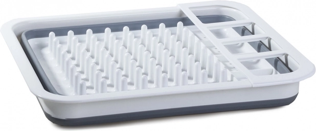 Ce égouttoir en silicone est un assistant révolutionnaire pour chaque foyer. Il se déploie rapidement en quelques secondes et lorsque vous n'en avez plus besoin, vous pouvez le replier et le ranger facilement dans le placard. Il a de la place pour les assiettes, les tasses et un égouttoir séparé pour les couverts, ce qui en fait un appareil multifonction.