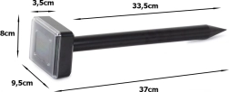 L’appareil est alimenté par un panneau solaire, il ne nécessite donc ni câbles ni remplacement de piles. Sa construction imperméable et robuste assure un fonctionnement fiable toute la saison quelles que soient les conditions météorologiques. L’installation se fait en un instant – il suffit de le planter dans le sol et de le laisser fonctionner.
